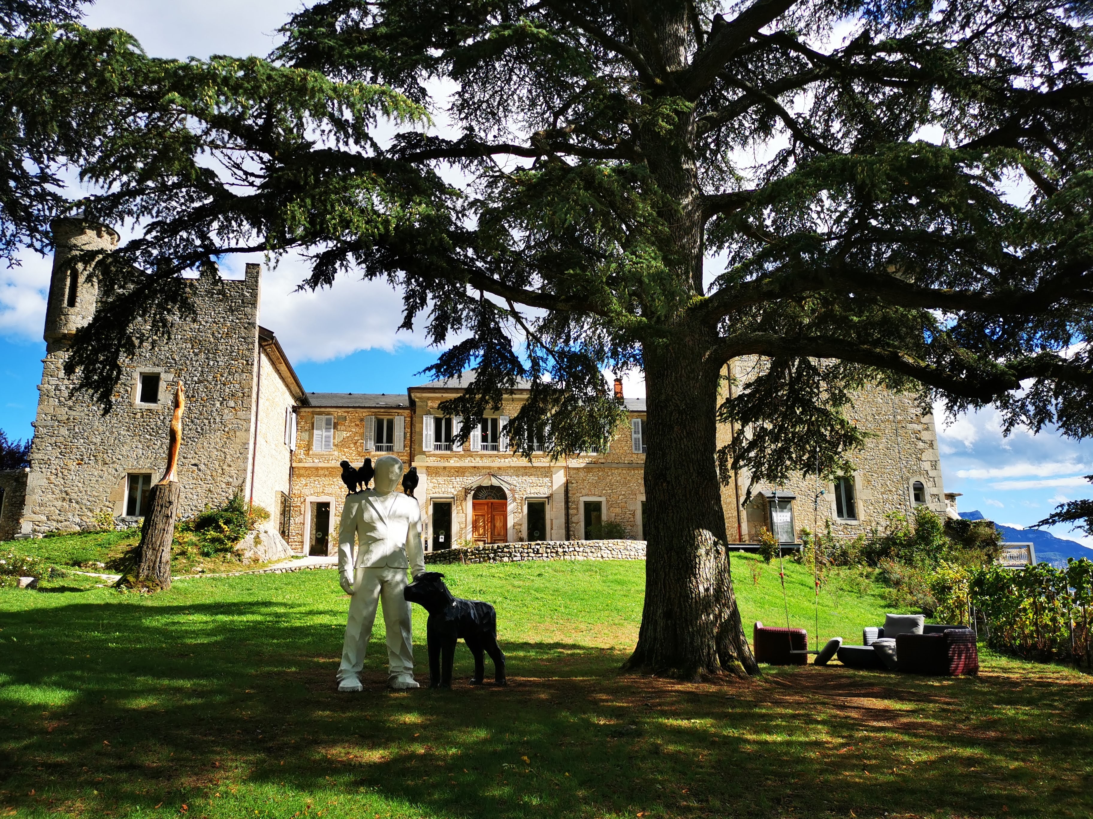 Au fil de mes escapades à vélo difficile d’ignorer cet édifice au pieds du col du chat, les sires de Seyssel en 1330 avaient du goût. Campé sur le Rocher dominant le lac du Bourget position magnifique non loin de l’abbaye royale d’Hautecombe. Prestance magnifique pour transformer cet édifice en Hôtel, restaurant. Le site enchante, par ces expositions et le design des aménagements aussi bien extérieurs qu’ intérieurs. Depuis les terrasses au sud on peut profiter du vignoble du château ainsi que des expositions d’artistes parsemées dans tout le parc. Les photos je pense sont beaucoup plus narratives que mes explications. L’entrée le piano, les perspectives sont justes magnifiques, les chambres sont grandes et spacieuses avec une vue plongeante sur le lac, soleil levant, quel spectacle. Un seul bémol l’isolation des toilettes aussi bien phonétiquement que pour les odeurs, c’est une catastrophe. Je vous laisse imaginer les toilettes dans la chambre. (Photos). Je recommande ce lieu plein de poésie dans tous les sens du terme qui vous permettra peut-être de découvrir grâce aux toilettes votre compagne ou votre compagnon d’une façon réaliste et sans fards. Merci à eux.